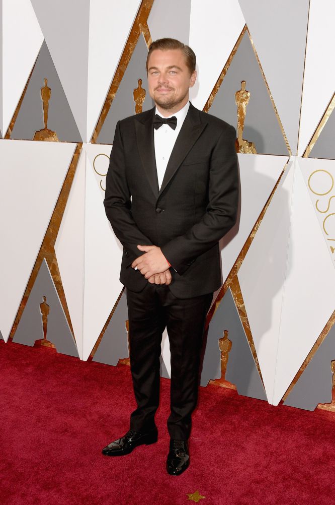 Otro de los actores nominados fue Mark Buffalo, este tiene 48 años y escogió un esmoquin azul con solapa negra y camisa blanca, es un fiel seguidor de los trajes en tonos negros o azules tornasolados y fue acompañado de su mujer Sunrise Coigney. Y por último voy a hablar sobre el nominado estrella de la noche, el actor Leonardo Di Caprio se llevó el premio al mejor actor debido al papel que interpreto en la película El Renacido, vistió con un traje negro y pajarita de Armani, Leonardo Di Caprio una ver más apareció solo a la gala, pero es uno de los mejores actores.